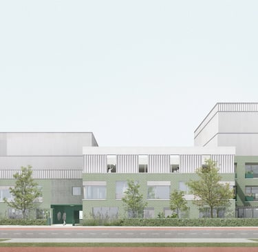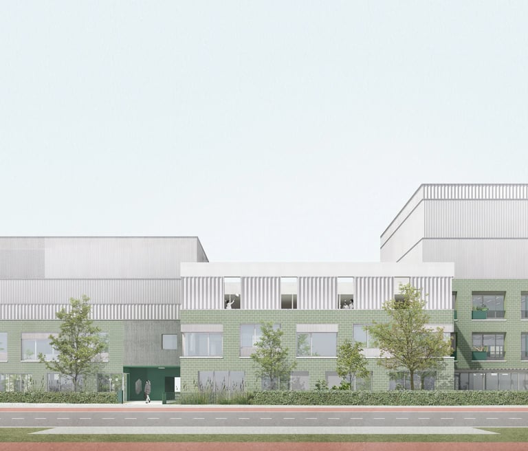 De campus krijgt twee nieuwe sporthallen, gerealiseerd in samenwerking met Sporting A. Overdag zullen leerlingen er sporten, terwijl de zalen ’s avonds en in het weekend openstaan voor sportclubs uit de buurt.